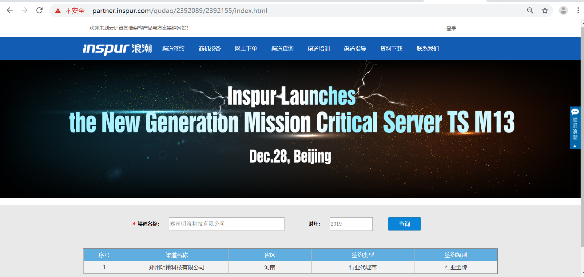 郑州明策科技有限公司继深信服商业金牌合作伙伴、派网金牌合作伙伴、信锐商业金牌合作伙伴后,又新增一重量级合作伙伴认证。我公司已通过浪潮的2019年度行业金牌代理商认证。官网查询信息如下。